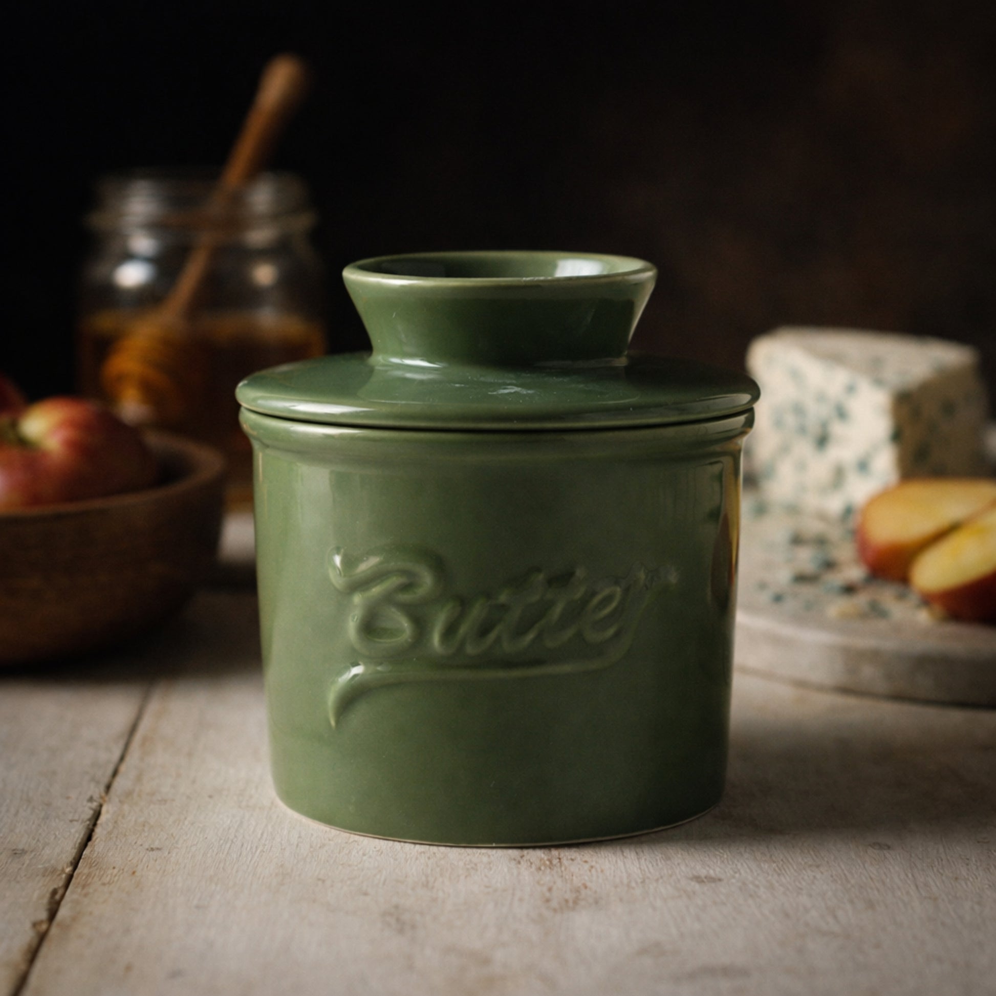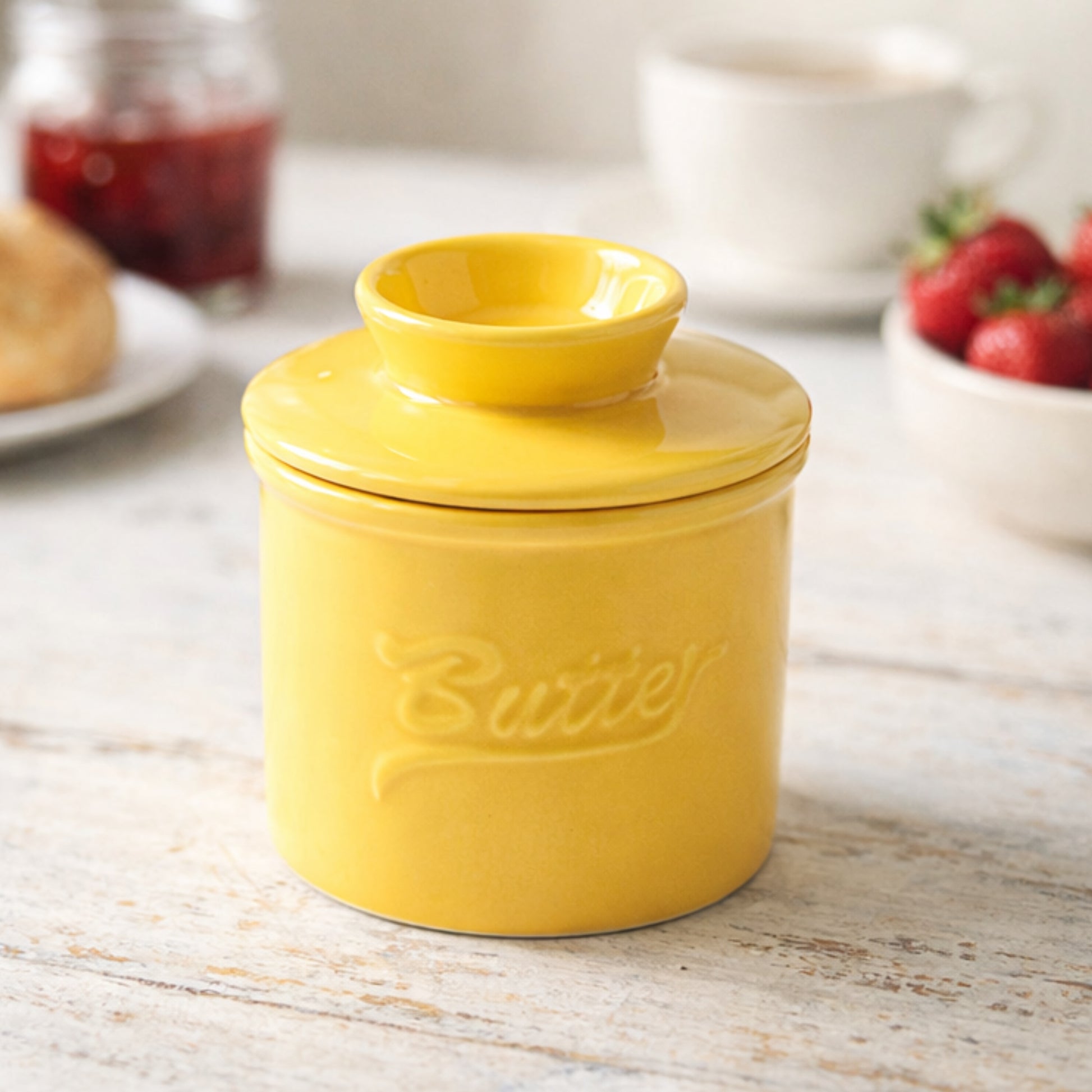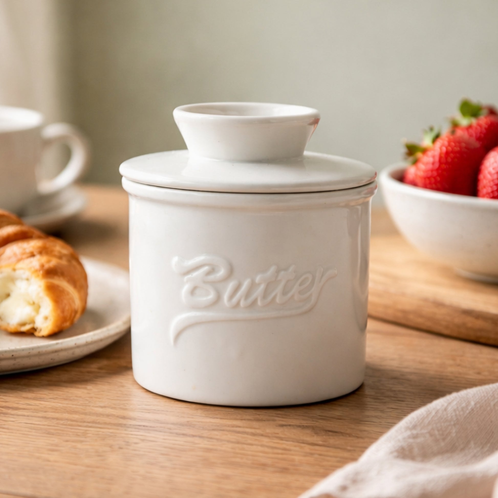 Med en smørklokke – eller fransk smørkrukke, butter bell, smørkopp, ja til og med smørbjelle, om du vil – har du mykt og smørbart smør alltid klart på kjøkkenbenken.
